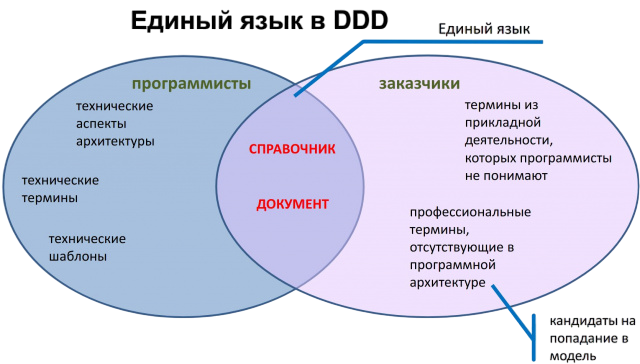 - Единый язык (Ubiquitous Language). Это общий словарь, который используют и разработчики, и бизнес-эксперты. Например, если мы говорим про «клиента», все понимают, что это значит.